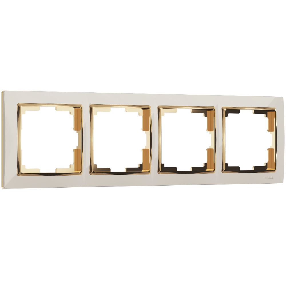 Рамка из поликарбоната Werkel Snabb на 4 поста Слоновая кость / Золото W0041932
