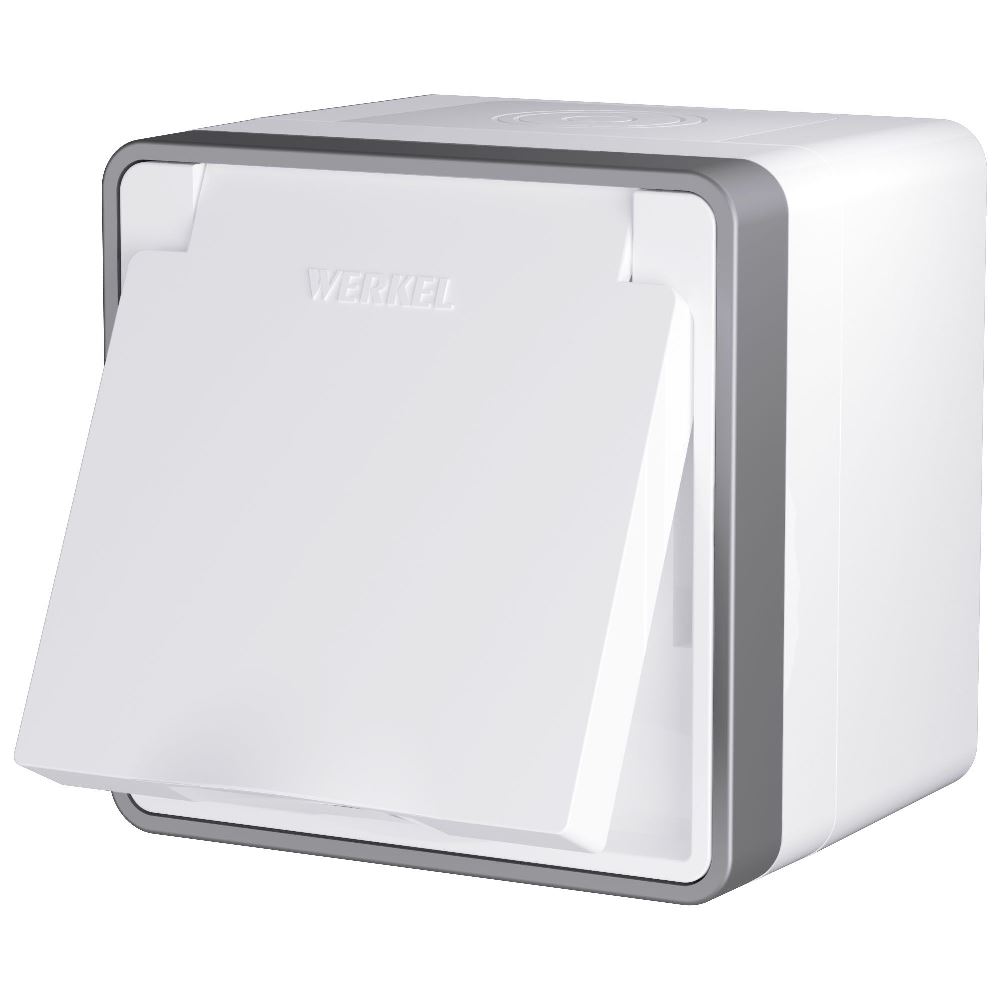 Розетка накладная влагозащищенная Werkel Gallant с заземлением, шторками и защитной крышкой Белый W5071201