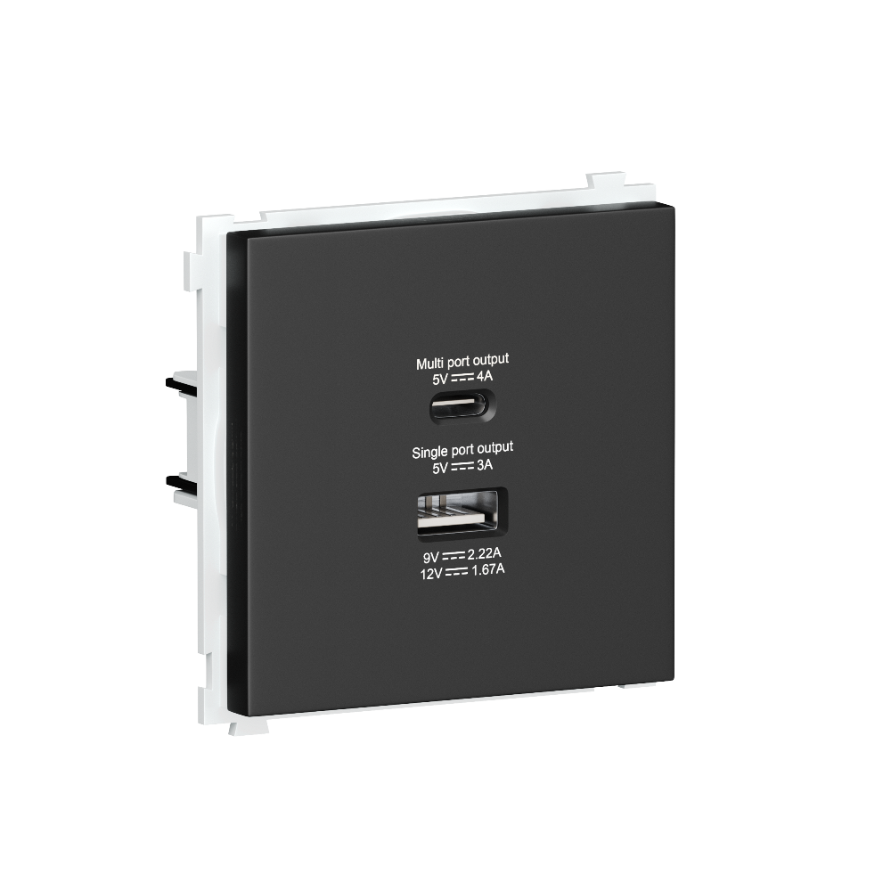 Розетка встраиваемая USB Donel R98 тип A+С быстрая зарядка Черный матовый DA20400-DA27728