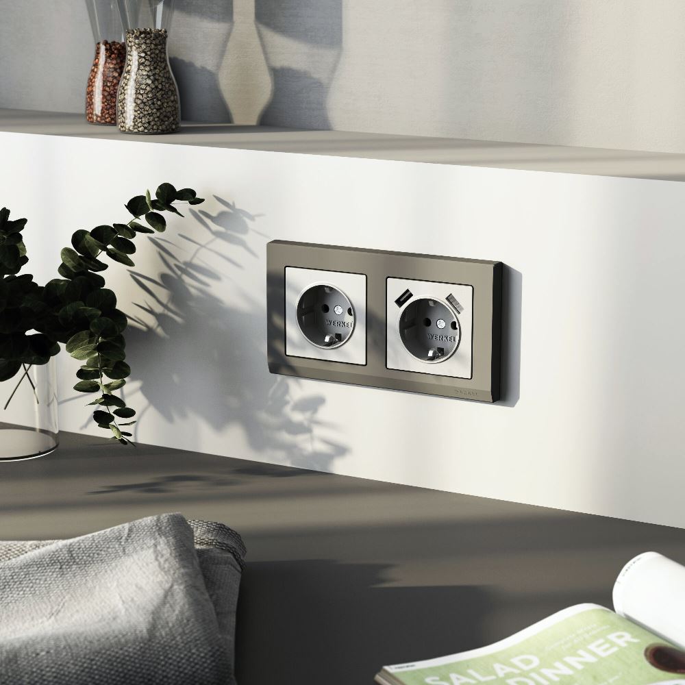 Розетка встраиваемая Werkel с заземлением и шторками Серебрянный матовый W1171165